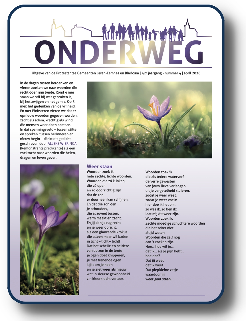 De website-redactie "ontleent" informatie uit kerkblad "Onderweg" en plaatst artikelen hieruit op de Blaricumse website. Voor de online versie klik hier. Oudere nummers van "Onderweg" zijn op aanvraag digitaal beschikbaar. Mail uw aanvraag dan naar de