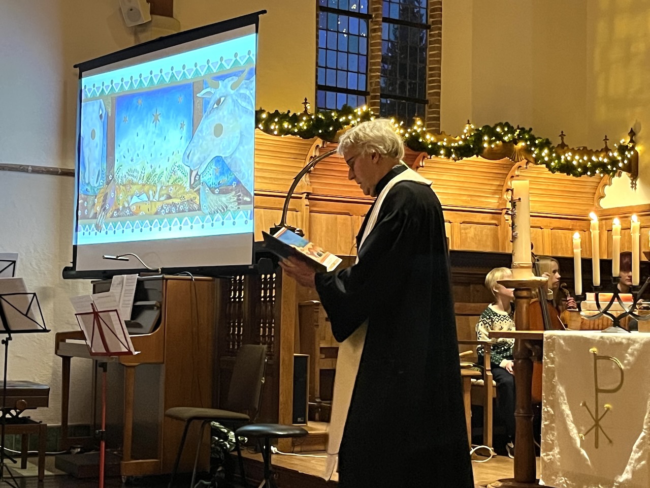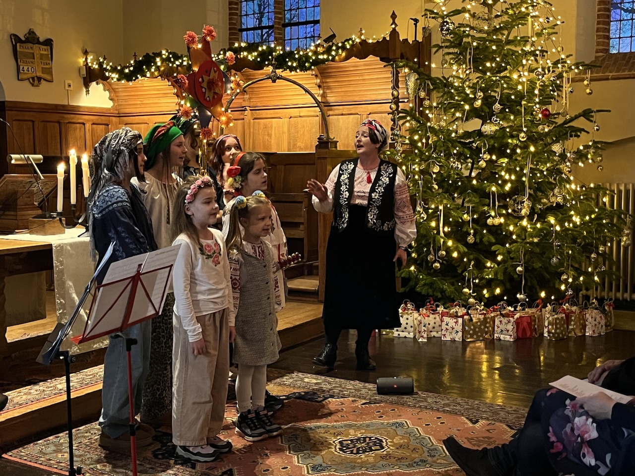 (foto: Kerstdienst met aandacht van de kinderen voor het kerstverhaal, 25 december 2024)